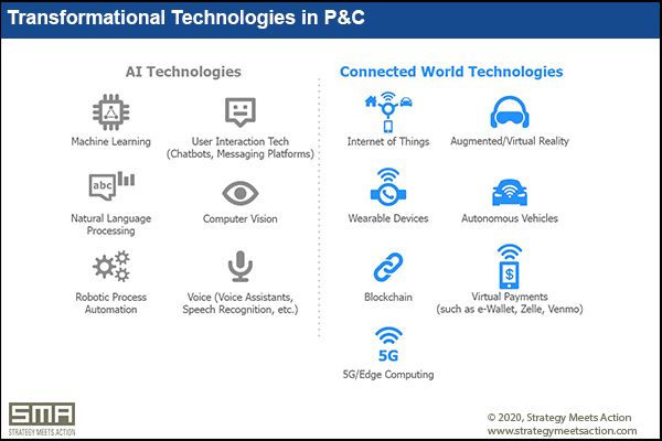 Technologies like machine learning, the IoT, RPA, and Natural Language Processing (NLP) were hot topics in P&C insurance before the world was turned upside down in 2020 due to the pandemic. These and many other “transformational” technologies have great potential for insurers in the rethinking and optimization of distribution, underwriting, claims, and many other parts of the business.[1] So, it is important to ask the question – how have the initiatives that leverage these technologies changed due to the pandemic? Are personal and commercial lines carriers still moving forward with projects in 2021? Do executives still have the same expectations about the potential of these technologies to transform their business? We answer these questions in detail for thirteen specific technologies in two new SMA research reports, one covering personal lines and the other covering commercial lines.