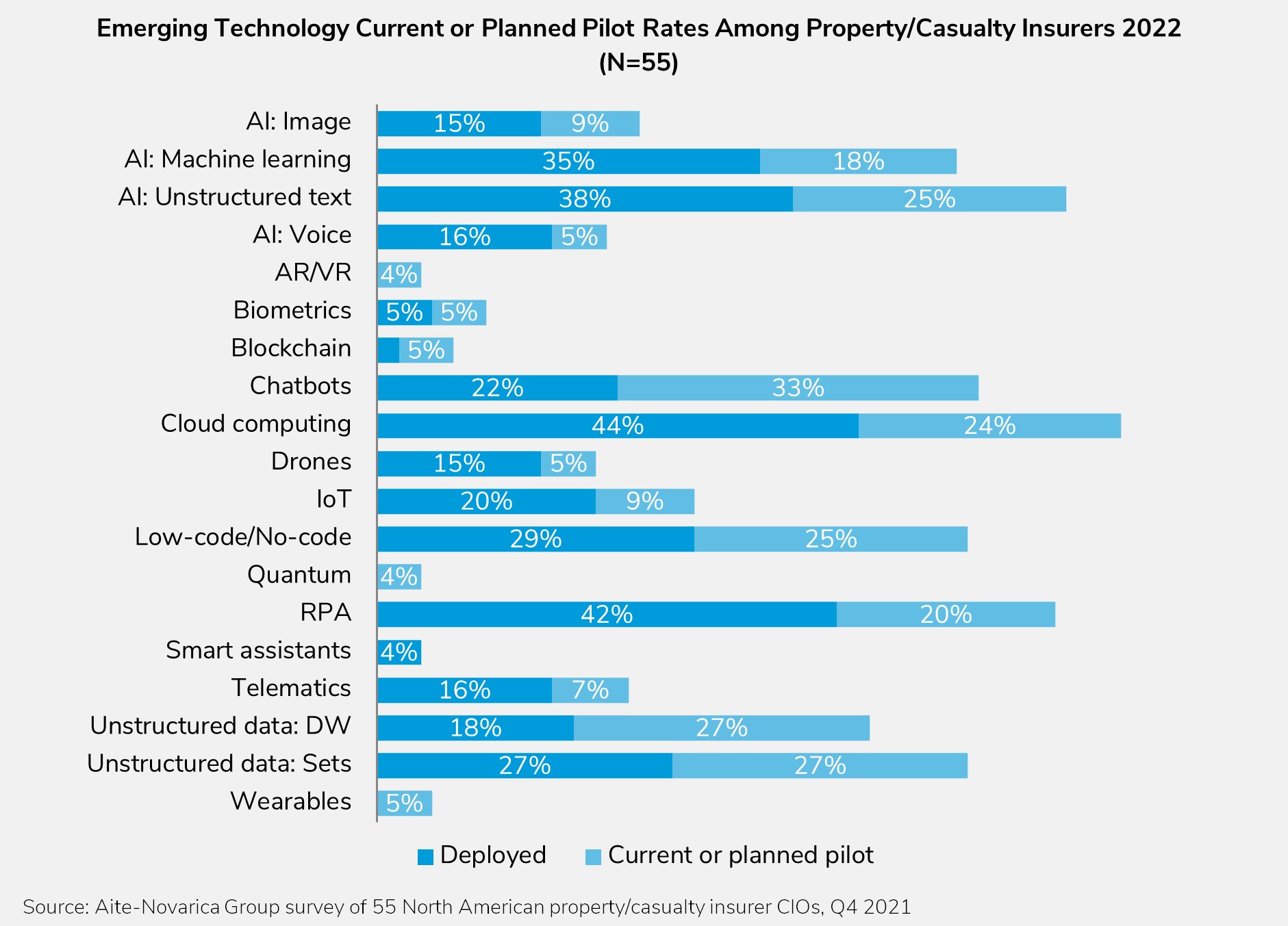 Emerging Technology for P/C Insurers 2022: Artificial Intelligence, Chatbots, Cloud Computing, Unstructured Data, and More